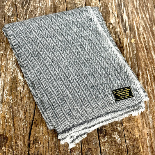 WOOL N CASHMERE BLEND 'CHARCOAL HERRINGBONE' SHAWL