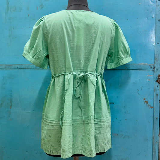 “Aquamarine” Ruched Baby Doll Short Dress 100% Cotton