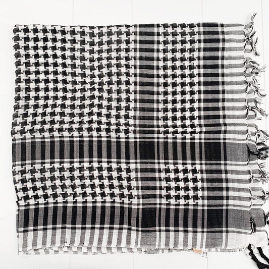 BLK & WHT CHECKERED COTTON SCARF 96x96CM