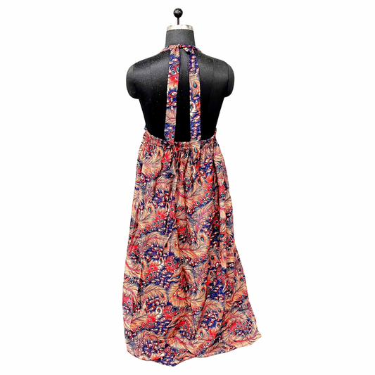 Coral Feather Print Halter Maxi Dress