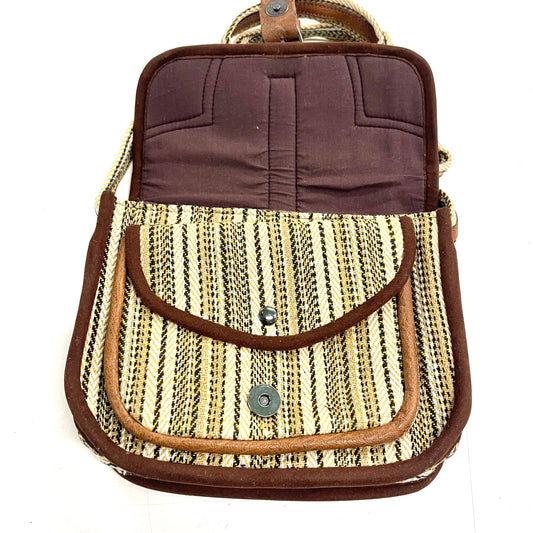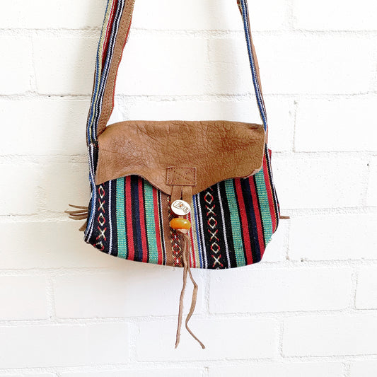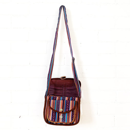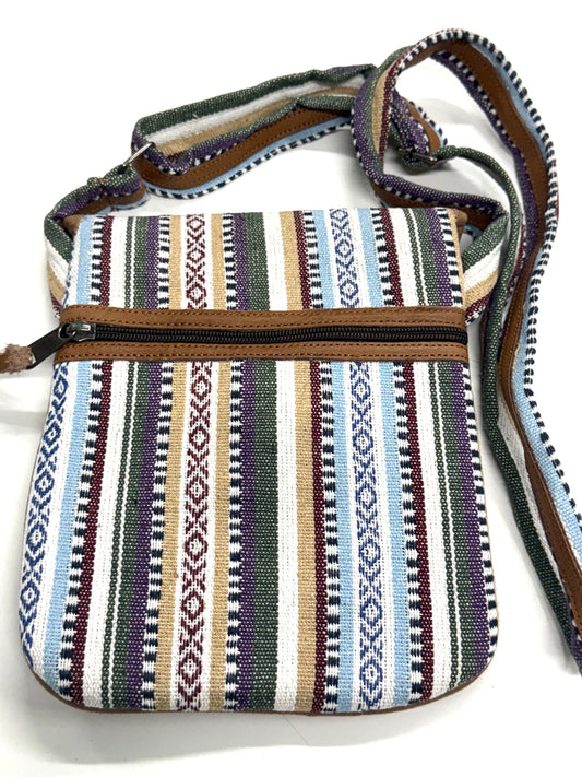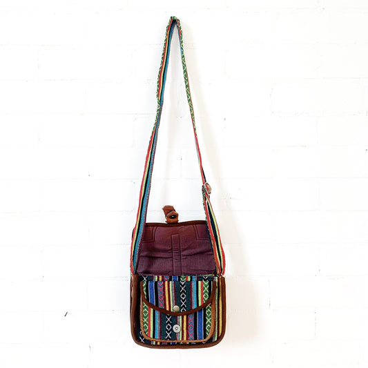 Cross Shoulder Handmade Leather & Cotton Bag 25x21cm